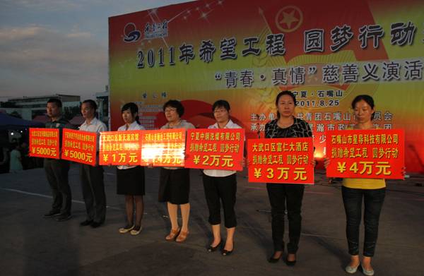 2011年石嘴山市參加高考的學(xué)生取得了驕人的成績(jī),一大批學(xué)子將邁進(jìn)理想的學(xué)堂,但其中部分優(yōu)秀大學(xué)新生因家庭貧困而無力負(fù)擔(dān)高額的學(xué)費(fèi)。為幫助即將進(jìn)入大學(xué)的經(jīng)濟(jì)困難學(xué)生解決實(shí)際困難,石嘴山市團(tuán)委積極開展愛心圓夢(mèng)大學(xué)行動(dòng),聯(lián)系社會(huì)愛心人士扶貧濟(jì)困。在獲悉這一情況后,我集團(tuán)公司董事長(zhǎng)李萍決定在石嘴山市團(tuán)委主辦的“奉獻(xiàn)愛心、圓夢(mèng)大學(xué)” 慈善基金募捐活動(dòng)上捐款2萬元,用于救助急需幫助的大學(xué)新生們。通達(dá)集團(tuán)充分發(fā)揚(yáng)手牽手、心連心的傳統(tǒng),為慈善事業(yè)出一份力、添一塊磚,用實(shí)際行動(dòng)回報(bào)社會(huì)。