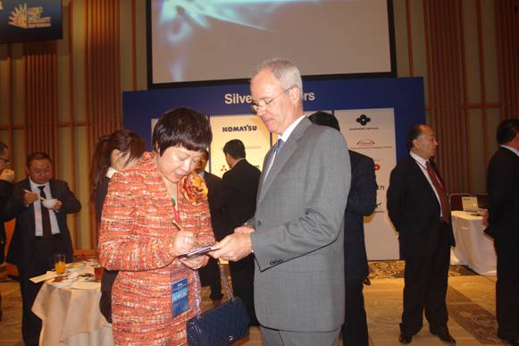 李萍總裁(左)在APEC峰會(huì)上與外商交流