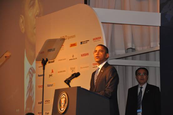美國總統(tǒng)奧巴馬在APEC工商領(lǐng)導(dǎo)人峰會(huì)上發(fā)言