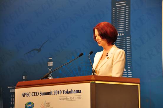 澳大利亞總理吉拉德在APEC工商領(lǐng)導(dǎo)人峰會(huì)上發(fā)言